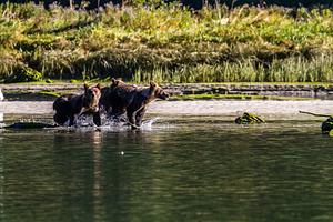 Three cubs on shore